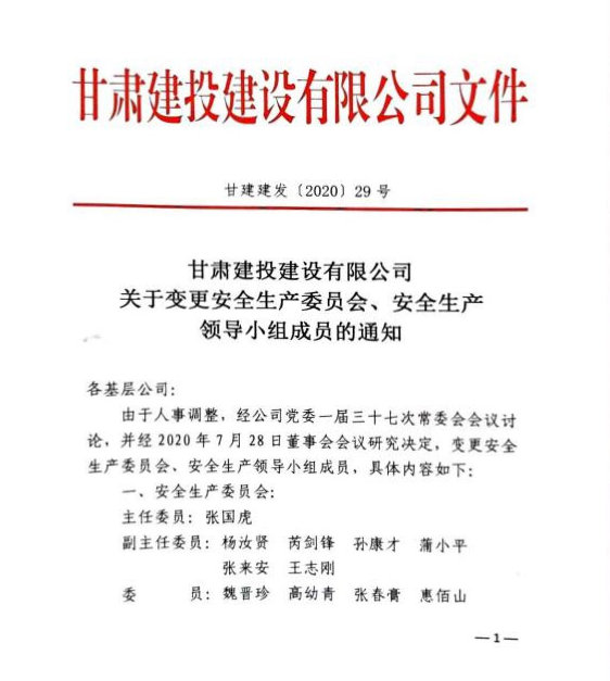 (建设公司成立安全生产委员会、安全生产领导小组)