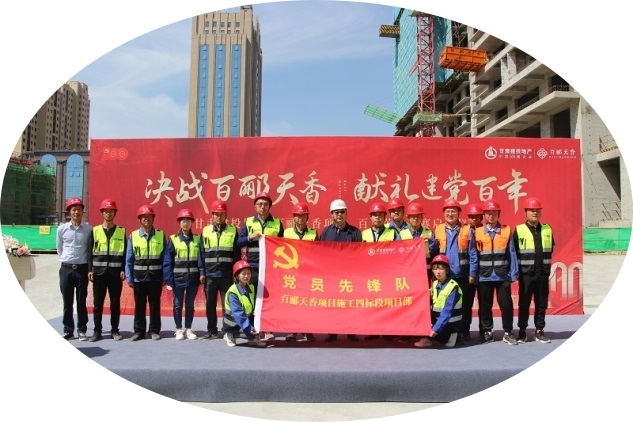 (一公司承建的临夏百郦天香项目授“党员先锋队”旗帜)
