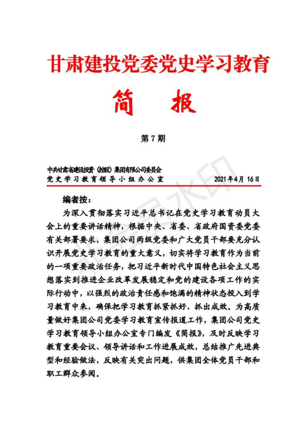 【党史回眸·天天学】甘肃建投党委党史学习教育简报(第7期)
