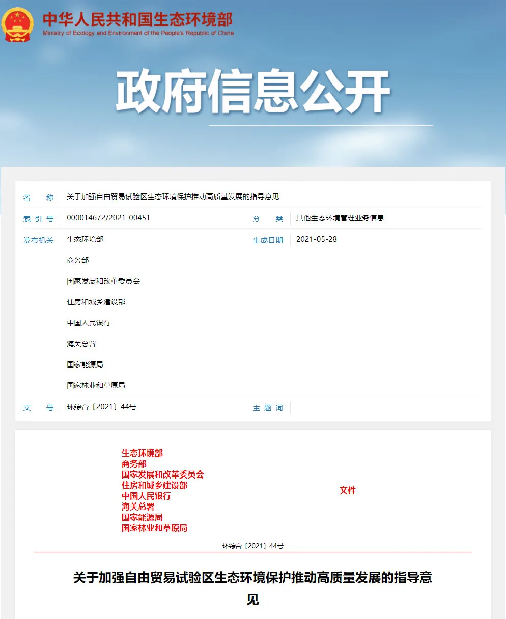 为深入贯彻习近平总书记关于自由贸易试验区(以下简称自贸试验区)建设的重要指示批示精神,落实党中央、国务院支持自贸试验区深化改革创新决策部署,加强自贸试验区生态环境保护,推动经济高质量发展,提出以下意见。