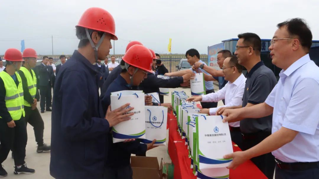 在项目负责人的带领下,李建军一行深入项目建设一线,实地察看了项目场区建设情况,详细了解了光伏组件、逆变器等设备材料进场计划、下一步施工安排等。并为奋战在作业一线的员工送去冰糖、茶叶、西瓜、饮料等防暑降温物品,把清凉送到项目一线,把关怀送到员工心坎。