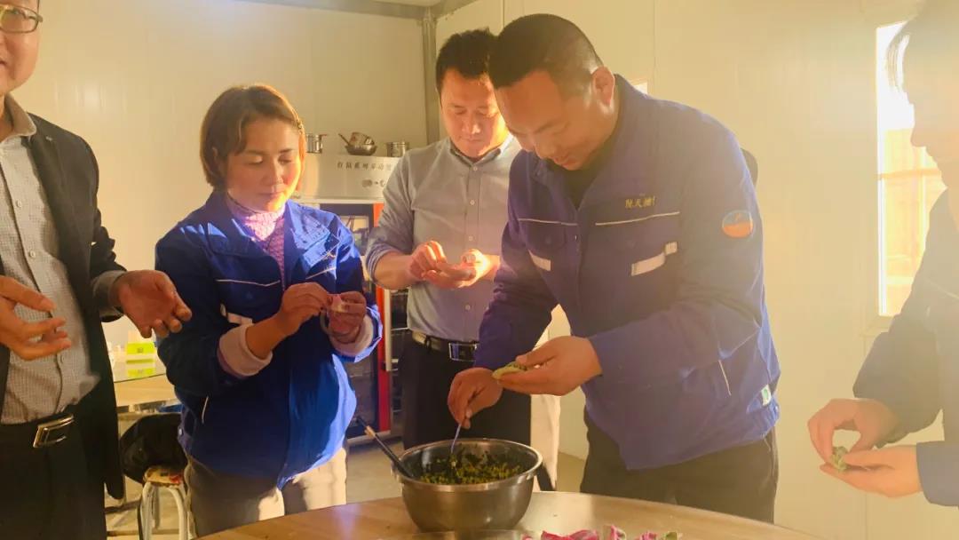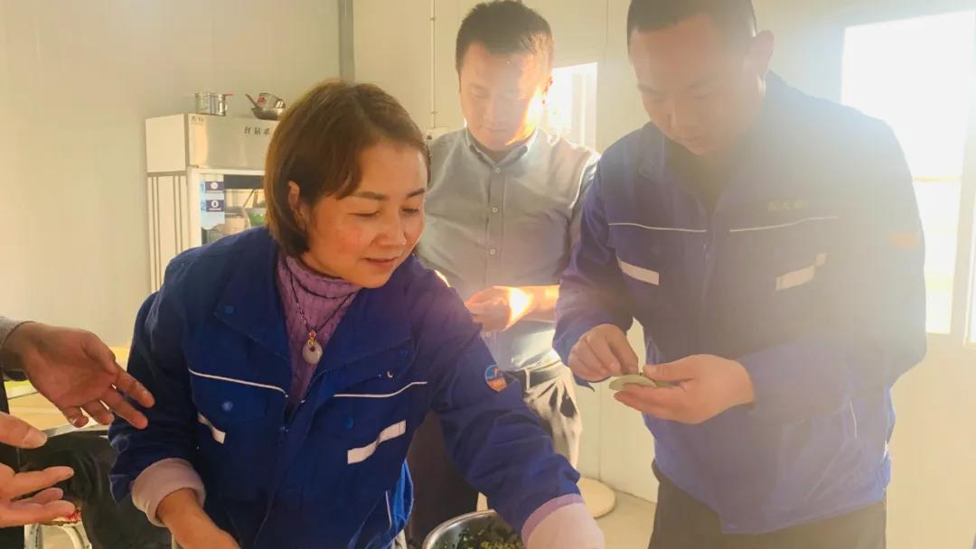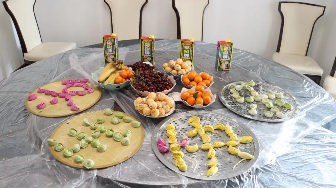 “哇,你包的这个在我们老家叫‘金元宝’,真好看”,“咦,还有红色的饺子皮儿,寓意着来年红红火火”,“我不会包你这种,来我现学一下”,“我这个简单,一捏就好了,速度型的”,“看我包的‘小麦穗儿’”……看!他们各显身手,一盘盘有模有样,造型各异的“七彩饺子”不一会儿就包好了。现场热闹一片,幸福的味道弥漫在食堂的每一个角落。
