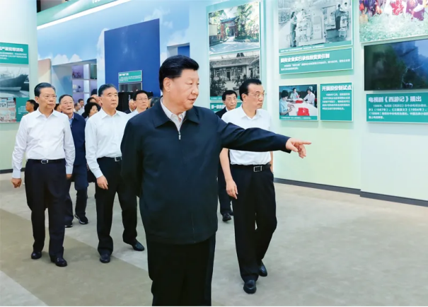 2019年9月23日,党和国家领导人习近平、李克强、汪洋、王沪宁、赵乐际、韩正、王岐山等在北京展览馆参观“伟大历程 辉煌成就——庆祝中华人民共和国成立70周年大型成就展”。 新华社记者 鞠鹏/摄